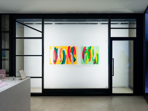 하태임(b.1973~)의 작품은 다채로운 색채들이 중첩되어 맑고 화사한 화면을 이루며, 그녀만의 독창적인 작품세계를 펼치고 있습니다. 작가는 자신의 팔을 이용하여 한 획을 그리고 물감이 마르기를 기다렸다가 그 위에 다시 획을 겹쳐 올립니다. 이 과정을 수차례 반복하여 조화로운 화면을 구성하는데, 이를 통해 언어와 문자가 아닌, 색채와 같은 순수한 시각 요소만으로도 소통이 가능하다는 것을 깨닫습니다. 이 과정에서 보여지는 다양한 색상의 코고 작은 곡선들은 보는 이들에게 율동적이면서 경쾌한 느낌을 전달합니다.